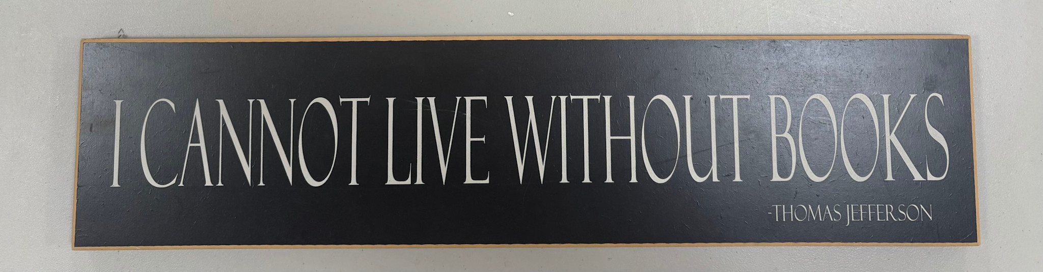WOOD PLAQUE WITH SAYING BY THOMAS JEFFERSON: I CANNOT LIVE WITHOUT BOOKS
